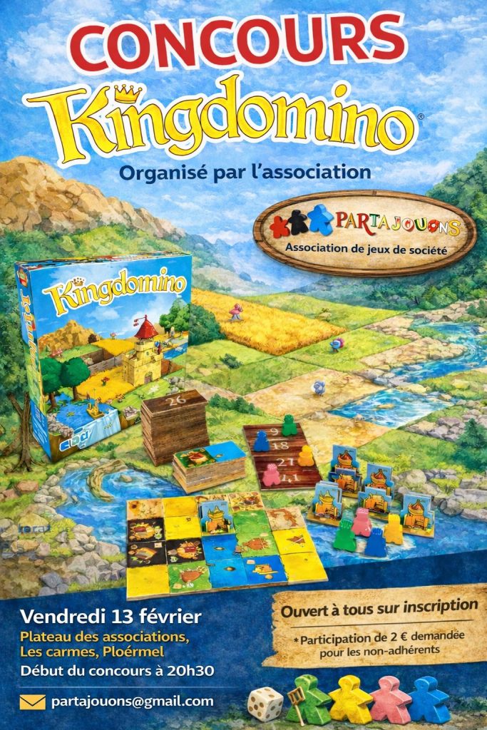 Votre association de jeu de société préféré de PLOERMEL vous organise un concours sur KINGDOMINO le vendredi 13 février 2026 à 20h30.